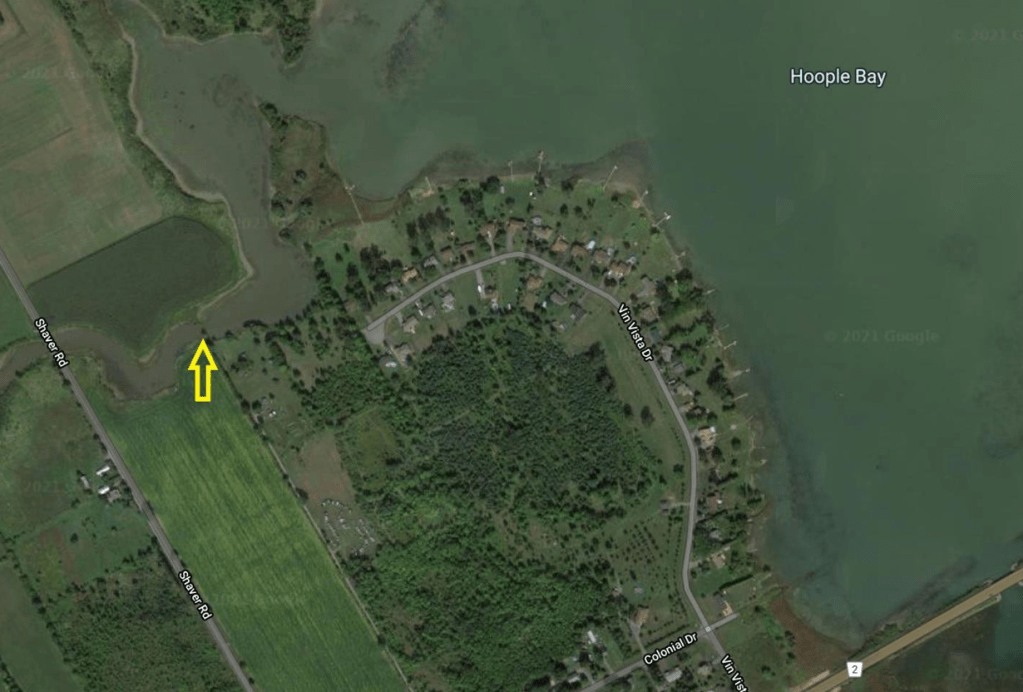 On 2021-07-04, John Sliter went over and visited with long time Hoople Creek resident Claude Collette and his son Corey. The old adage if you want to talk fish –find the person who is the oldest guy on the river or lived there the longest! Not that Claude is that old, but he and his son had quite a story to tell of their experiences on their property on Hoople Creek as they have lived there for almost 30 years. Their property borders the spot where Hoople Creek first drains into Hoople Bay.